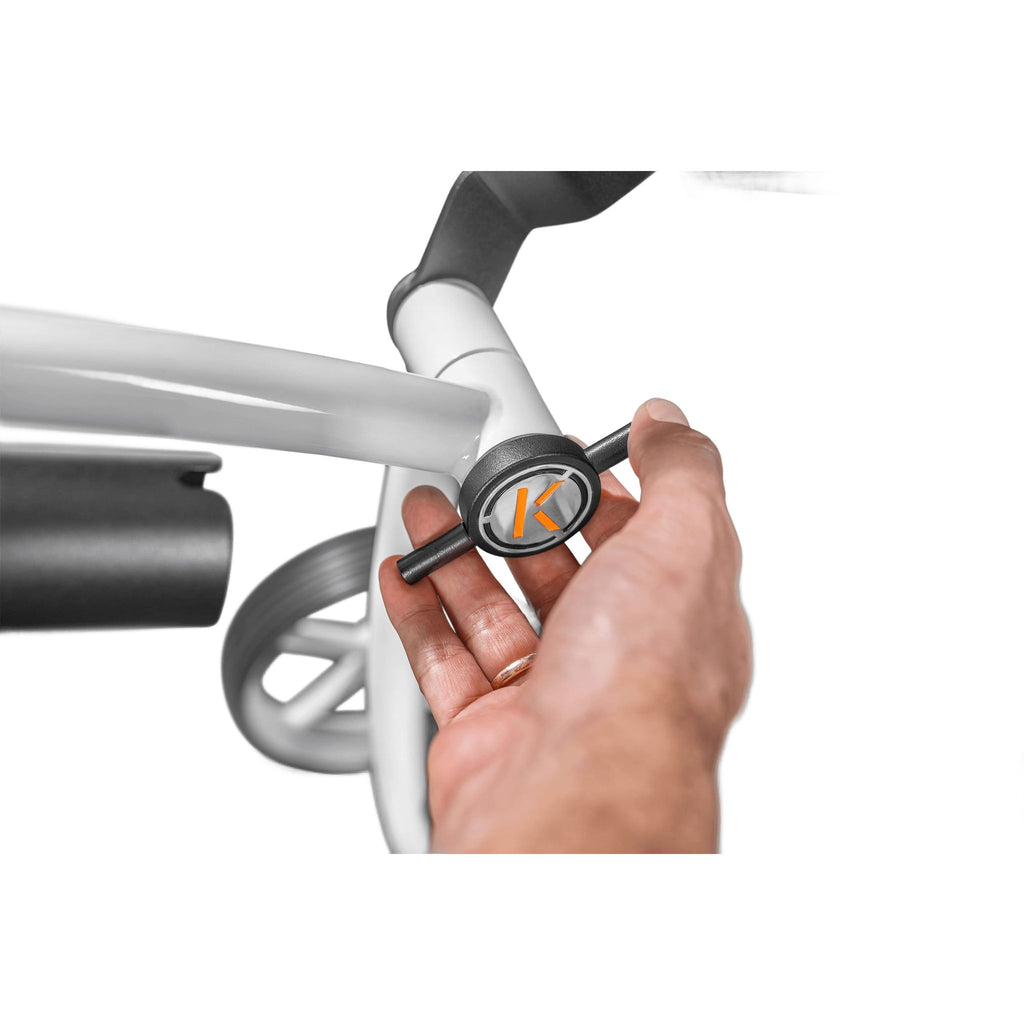 Die auf beide Antriebsräder wirkende elektronische Feststellbremse bringt ein Höchstmaß an Sicherheit mit sich. Darüber hinaus punktet der Kiffe K5 E-Trolley mit der praktischen Geschwindigkeitsmemory-Funktion: Dementsprechend lässt sich die zuletzt eingestellte Geschwindigkeit durch die Betätigung des Start-/Stopp-Schalters sofort wieder abrufen. Damit Sie die wichtigsten Daten jederzeit überprüfen können, bietet der Kiffe K5 E-Trolley zwei unterschiedliche Kontrollanzeigen: Mit der Motor-Aktivitätsanzeige haben Sie jederzeit die technische Performance im Blick, während Ihnen die Akku-Kapazitätsanzeige konkrete Anhaltspunkte für die verbleibende Nutzungszeit liefert.
